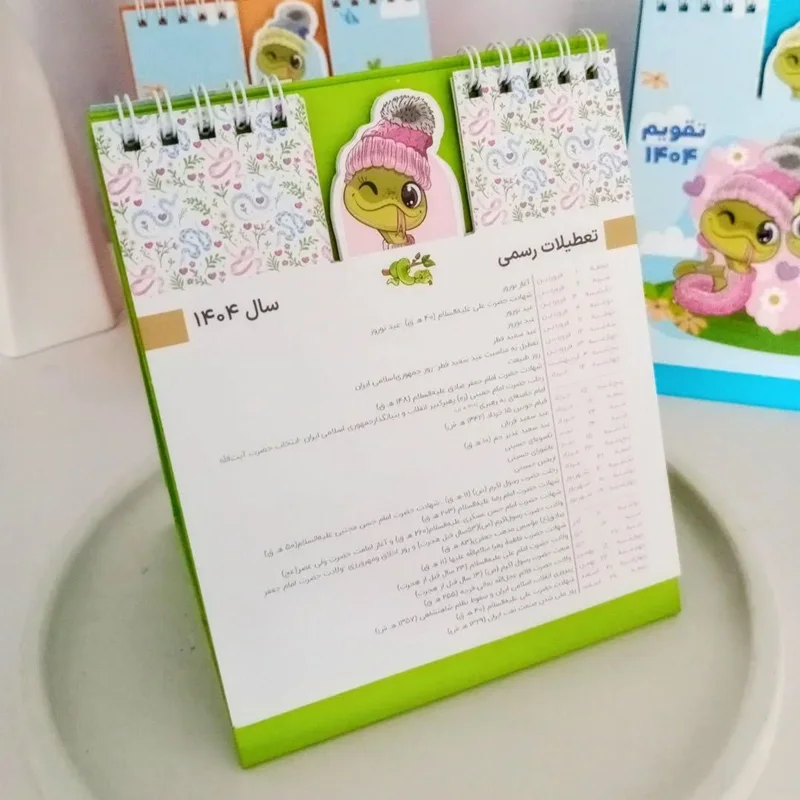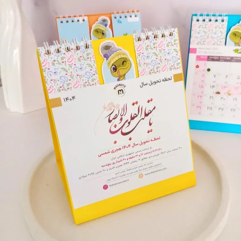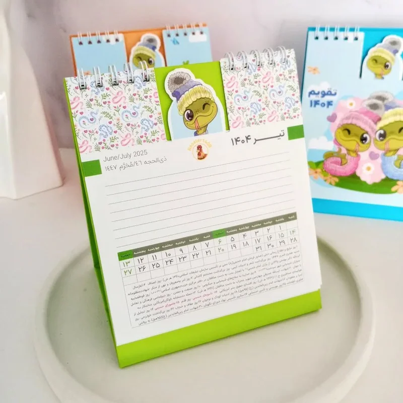 تقویم یک بخشی رومیزی یک وسیله کاربردی است که برای برنامهریزی و بررسی زمان استفاده میشود. این تقویم به شکلی طراحی شده است که قابلیت قرار دادن روی میز شما را دارد و میتوانید با نگاه به آن، تاریخ و رویدادهای مهم را در دسترس داشته باشید.تقویم یک بخشی به صورت ماهانه طراحی شده است و شامل ت روزهای هفته، شماره روز، نام ماه و تاریخ شمسی و میلادی میباشد.  تقویم رومیزی برای کاربرانی که برنامه ریزی و مدیریت زمان را برای خود جدی میگیرند، بسیار مفید است. با استفاده از این تقویم، میتوانید رویدادهای مهم را برنامهریزی کنید و همچنین به راحتی مشاهده کنید که چه رویدادهایی طی آینده نزدیک درانتظار شماست.