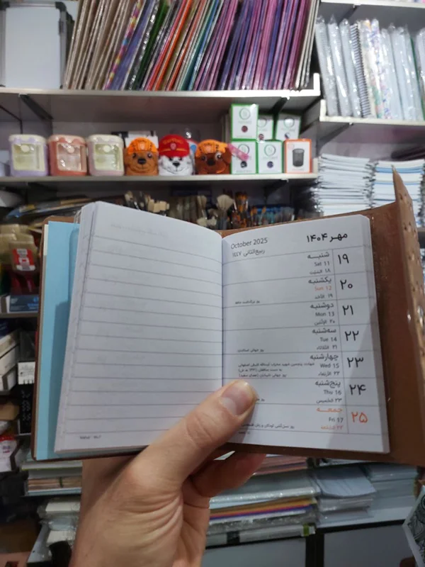 تقویم کیفی جلد چرم مصنوعی نهال دارای دو قسمت مجزای سالنما (تقویم) و قسمت یادداشت هفتگی 64 برگی