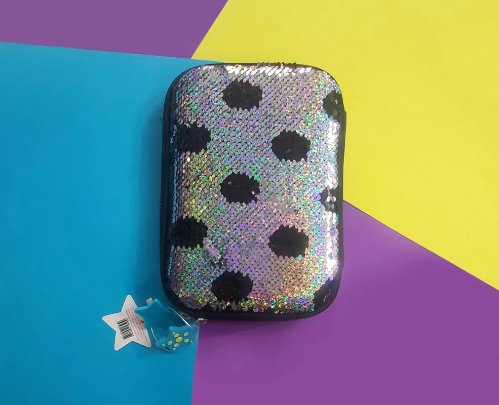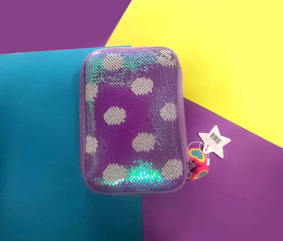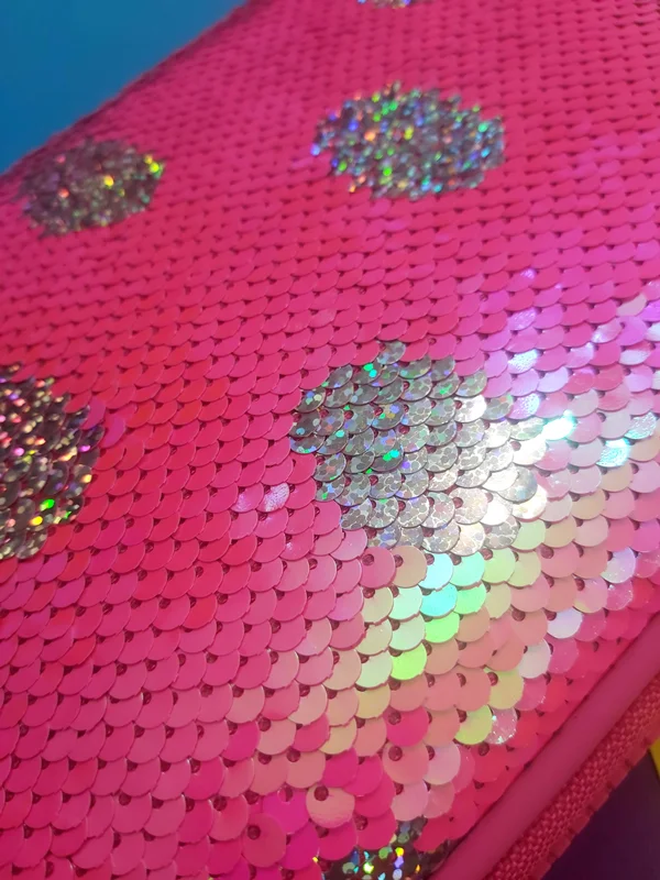 با دست کشیدن روی پولک ها رنگ زمینه و خالهای جامدادی برعکس میشود و تصویر جدید ظاهر میشود