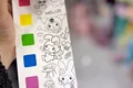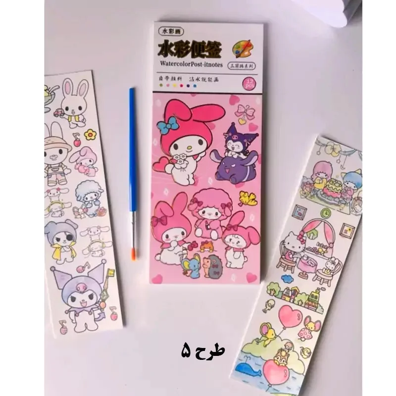 به همراه رنگهای آبرنگ مورد نیاز رنگ آمیزی در هر برگ + قلم مو