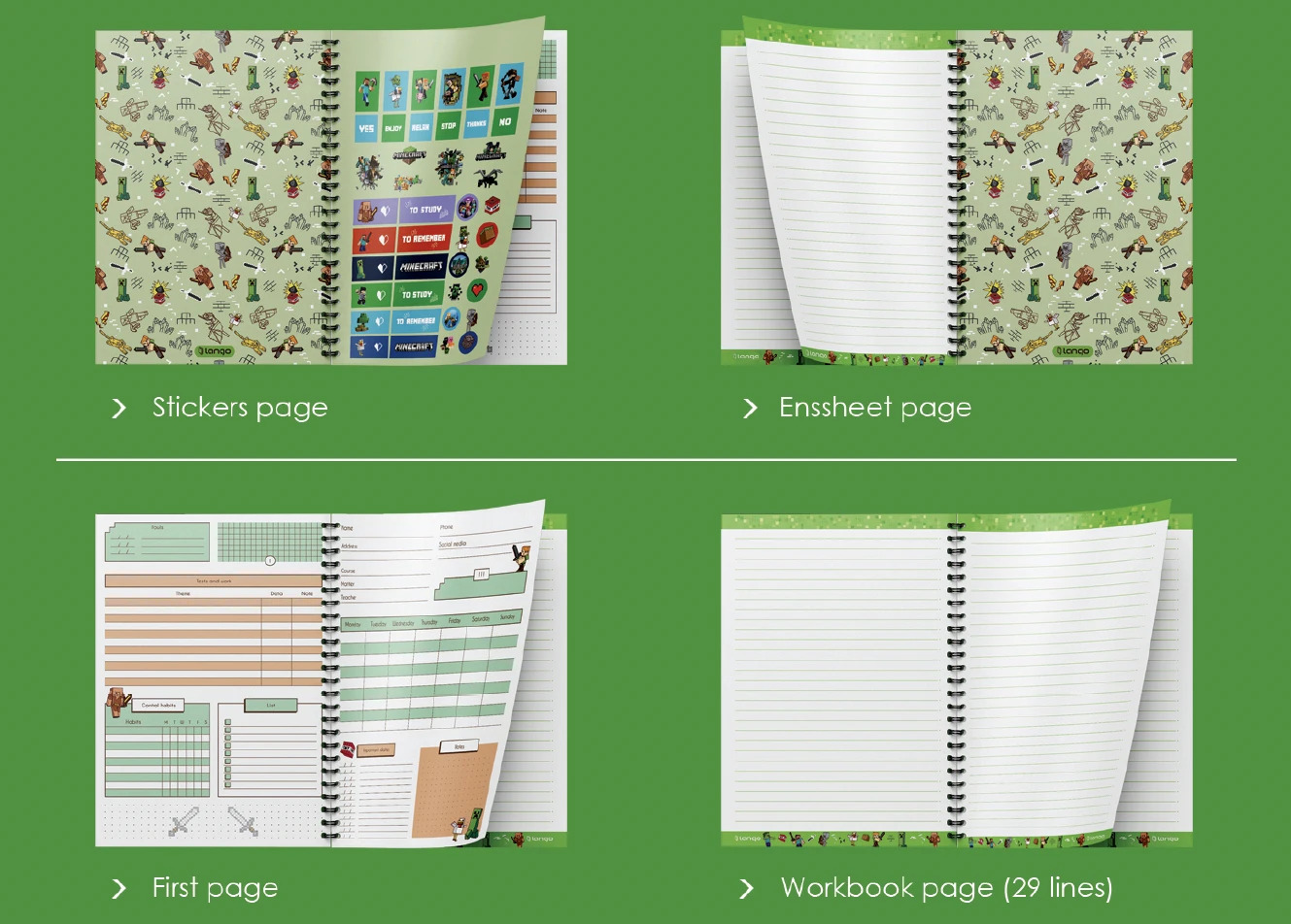 دارای یک صفحه استیکر + دو صفحه پلنر + حاشیه طرح ماینکرفت
