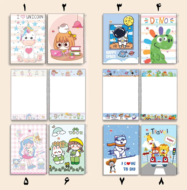 دفتر نقاشی جدید با حاشیه های کارتونی بسیار زیبا در بالا و پایین هر صفحه