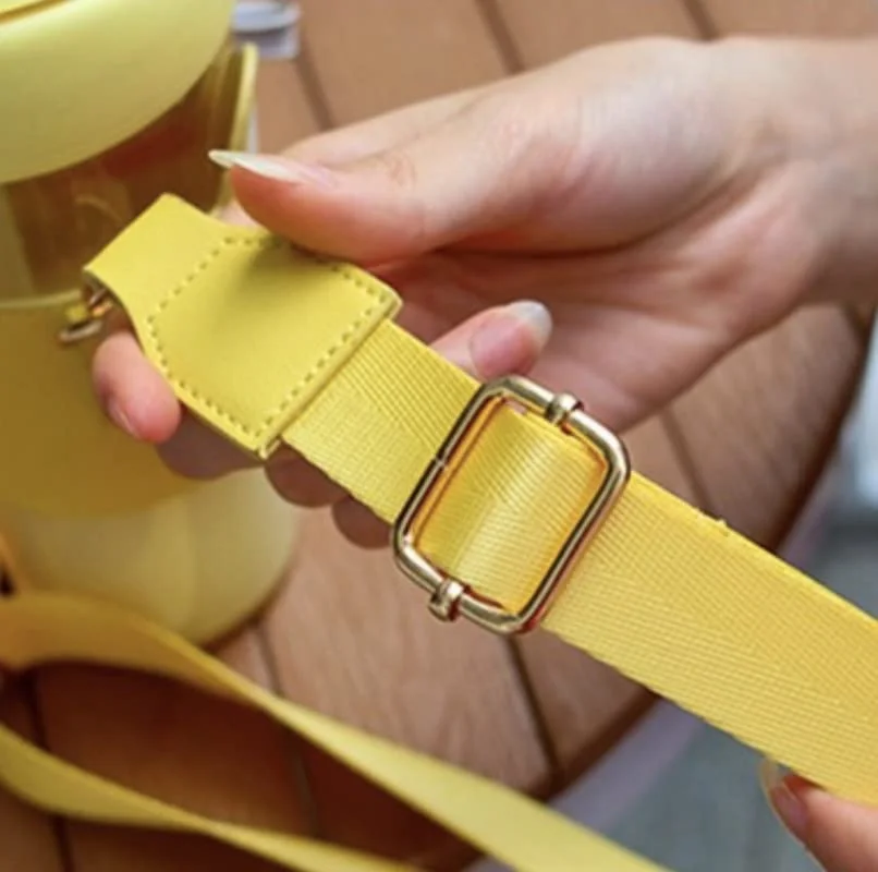 دارای دو عدد بند آویز (بند آویز پهن با قابلیت افزایش و کاهش طول که با گیره به کاور چرمی روی قمقمه وصل می شود و یک عدد بند باریک مچی که به سوراخ آویز روی خود قمقمه وصل می شود)