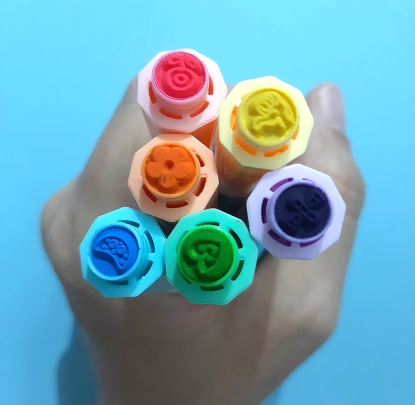 دارای 6 طرح مختلف مهر بر روی درب هر رنگ ماژیک
