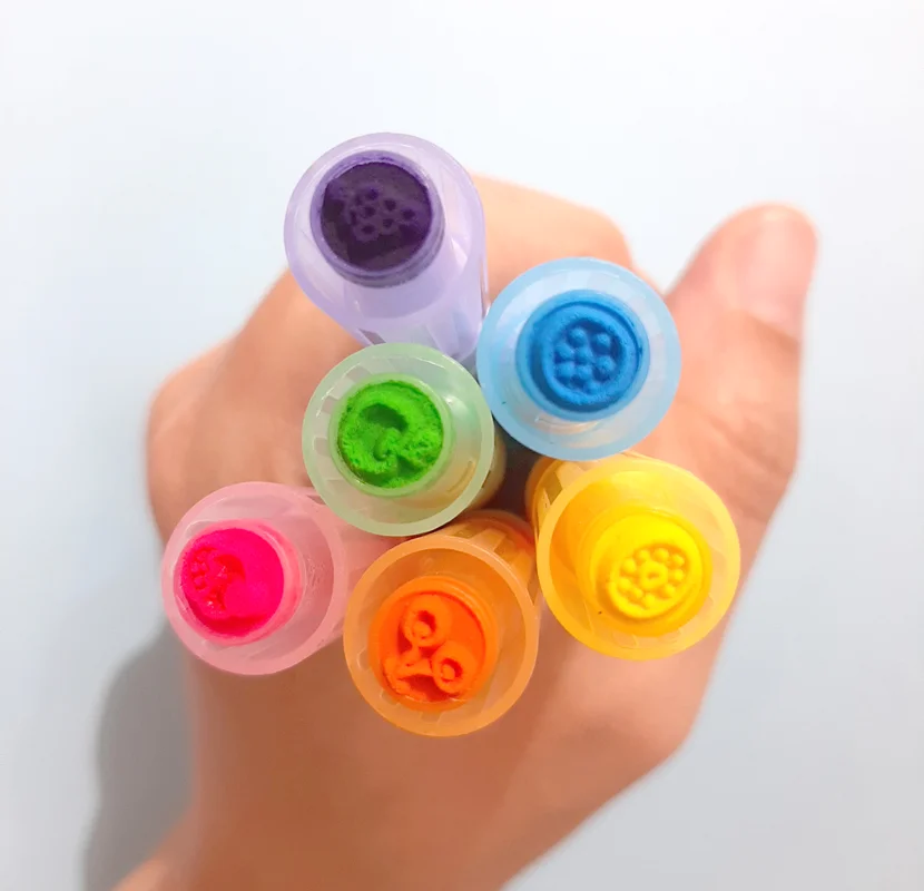 دارای 6 طرح مختلف مهر بر روی درب هر رنگ ماژیک