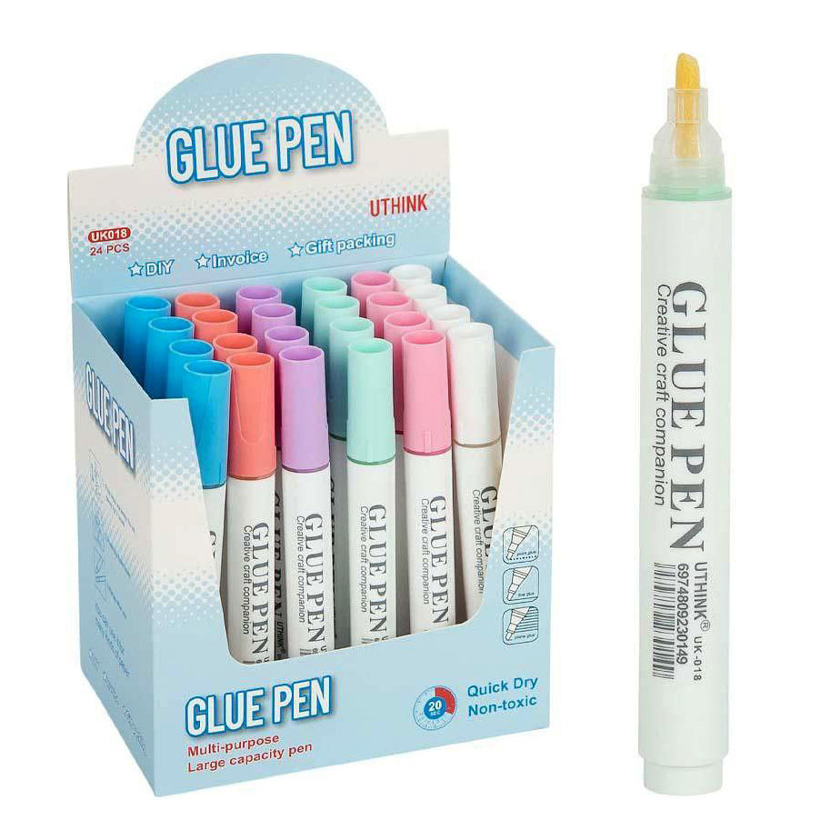 این چسب به صورت مایع بوده و رنگ چسب آن مطابق با رنگ درب هر قلم می باشد